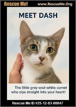 (Central Texas Adoption Only & Home Delivery) Meet Dash - the little grey-and-white comet who zips straight into